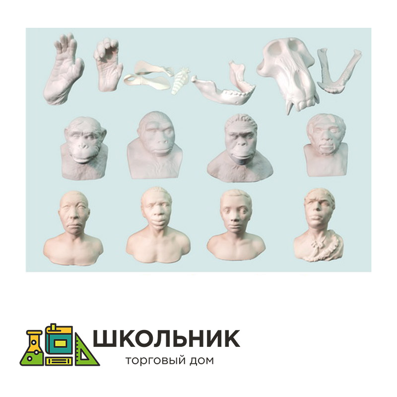 Набор моделей палеонтологических находок "Происхождение человека"Комплект моделей предназначен для использования в общеобразовательных учреждениях на уроках биологии и природоведения, в качестве демонстрационного пособия при изучении раздела о происхождении человека.