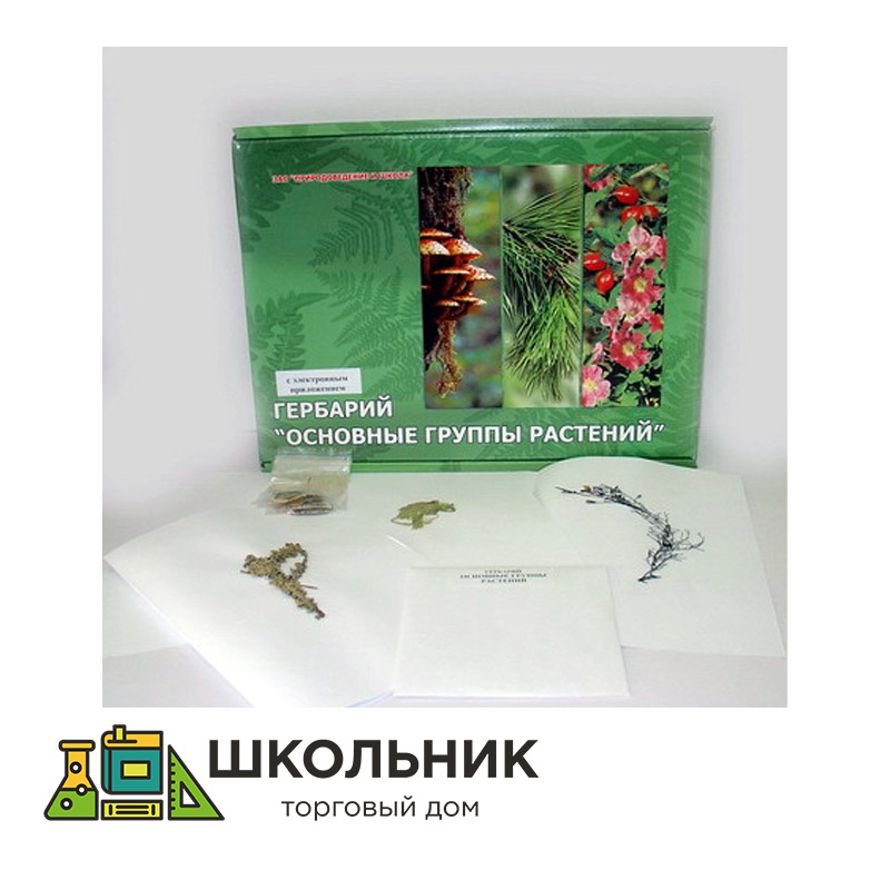 В гербарии представлены растения, относящиеся к следующим отделам растений: водоросли, грибы, лишайники, мхи, плаунообразные, хвощеобразные, папоротникообразные, голосеменные, покрытосеменные. Каждый отдел представлен 2-5 растениями. Список растений прилагается. Засушенные растения наклеены на гербарные листы (формат А4), на лицевой стороне которых приведены наименования отделов растений, наименования растений, грибы могут быть упакованы в пакеты или представлены в виде муляжей.