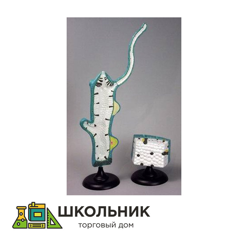 В комплекте 2 цветные модели, изготовленные из пластмассы. Одна модель (большая) демонстрирует особенности внешнего и внутреннего строения пресноводной гидры (имеет съемное щупальце). Вторая модель (малая) демонстрирует клеточное строение тела гидры. Изделие упаковано в коробку с маркировкой.