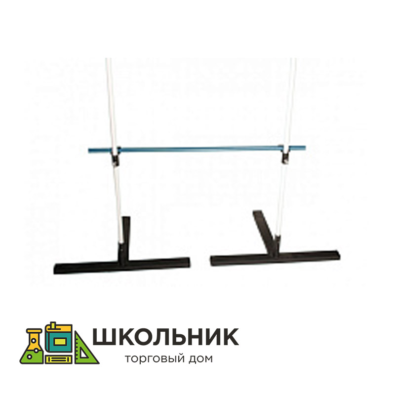 Представляет собой сборную конструкцию, состоящую из двух Т-образных оснований (профиль 25х25мм) и двух выдвижных стоек (диаметр 20мм), соединенных крепежными винтами. На выдвижные стойки устанавленны подвижные кронштейны с полками для планки, фиксируемые с помощью винтов на необходимой высоте. Без шкалы для определения высоты планки. Поверхность стоек окрашена порошковым напылением. Максимальная высота планки - 3000мм