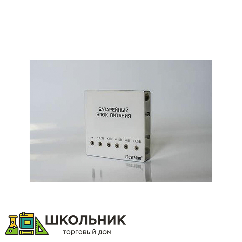 Источник питания представляет собой батарейный блок с возможностью регулирования выходного напряжения от 1,5 до 7,5 В с шагом в 1,5 В. Собран в пластмассовом корпусе. На крышке корпуса установлены гнезда для подключения нагрузки. Работает от 5 батареек на 1,5 В типа АА (в комплект не входят).