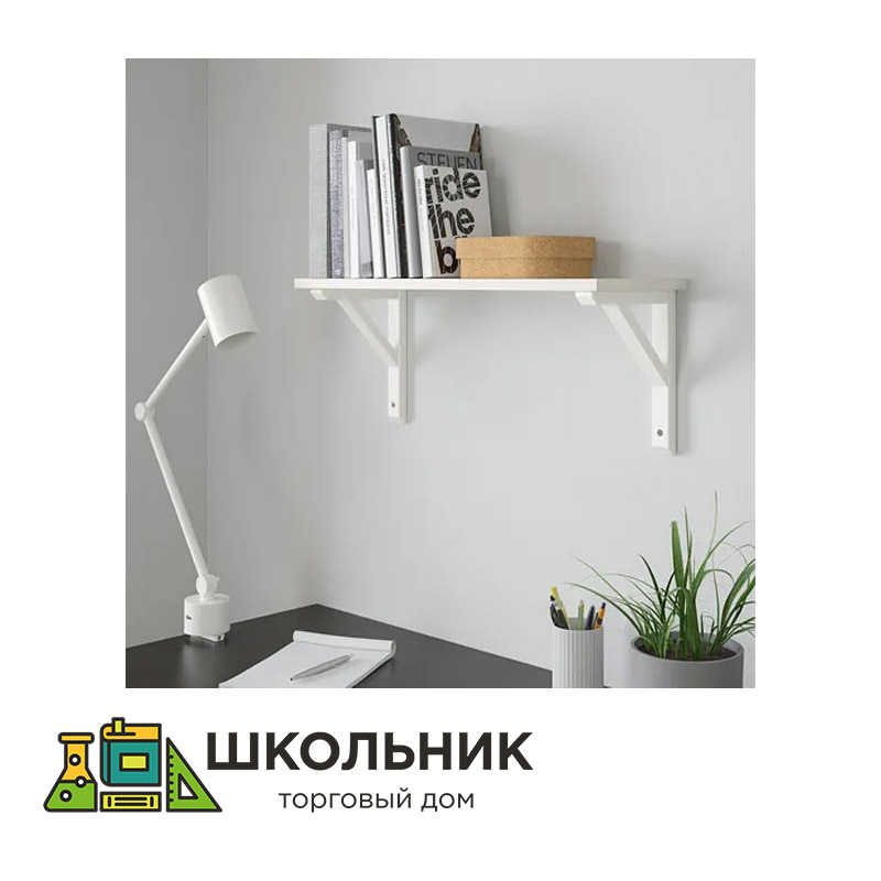 Полка - древесностружечная плита, Бумажная фольга, пластиковая окантовка. Кронштейн - массив осины, прозрачный акриловый лак. Протрите чистой тканью, смоченной в мягком чистящем средстве. Вытрите насухо чистой тканью. Ширина: 59 см Глубина: 20 см Максимальная нагрузка: 10 кг